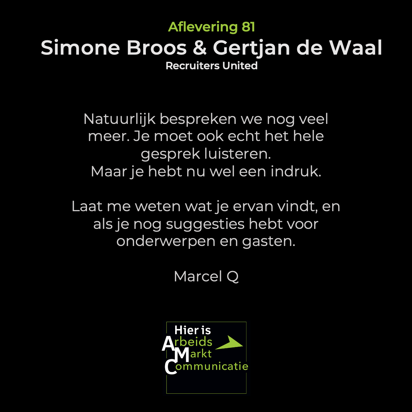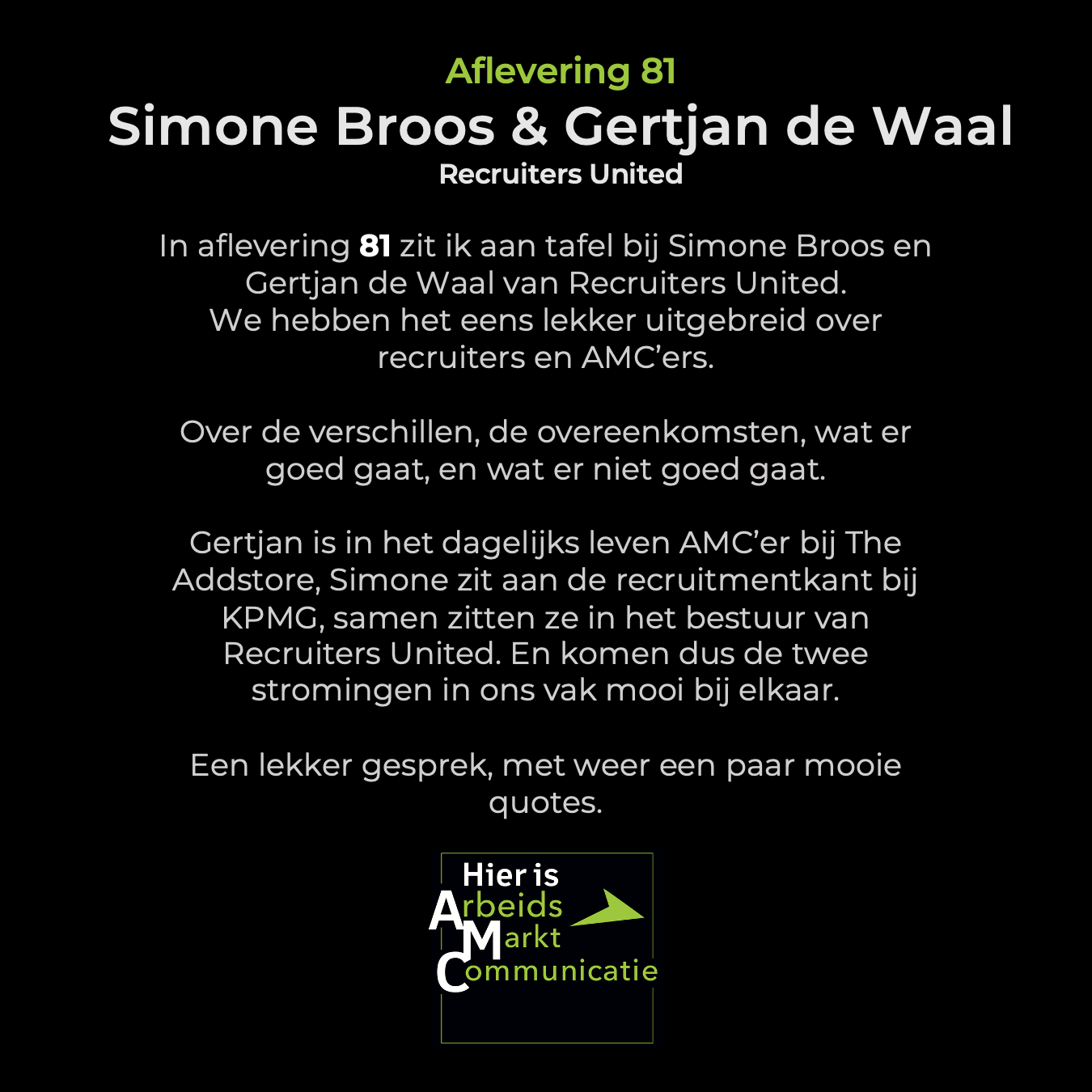 In aflevering 81 zit ik aan tafel bij Simone Broos en Gertjan de Waal van Recruiters United.